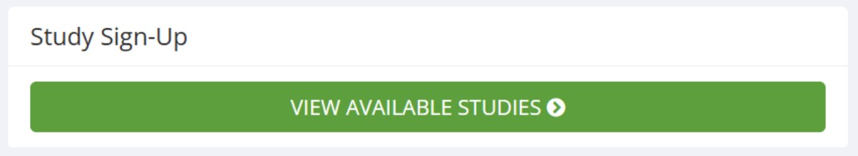 - After completing the prescreen, go to Study Sign-Up and select View Available Studies. You can also find this under the Studies tab in the main menu. Click on any available study for more information. The list of available studies will update regularly. By default, you will get a weekly email summary of available studies.